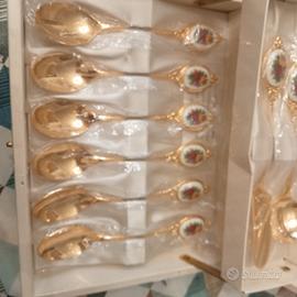 servizio cucchiaini da the Royal Albert Old Country Roses placcati oro con confezione originale perfetti si trovano a Favaro Veneto provincia di Venezia posso spedire