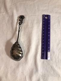 Vendo uno splendido cucchiaio decorativo vintage lungo circa 16 cm e con un peso di 23 gr. Questo pezzo si distingue per la sua eccezionale lavorazione e il fascino d'altri tempi.