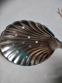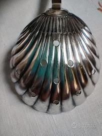 Cucchiaio vintage da cocktail marcato GANCIA, a forma di conchiglia e traforato per gestire le olive o le ciliegie sotto spirito. Indicativamente anni '40 Lungo cm 20, in ottime condizioni.