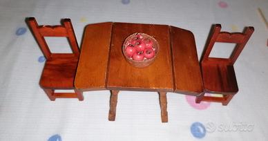 Cucina completa, con accessori, stile retrò vintage, collana De Agostini anni '80, in legno color mogano, casetta delle bamboline, collezionabile.