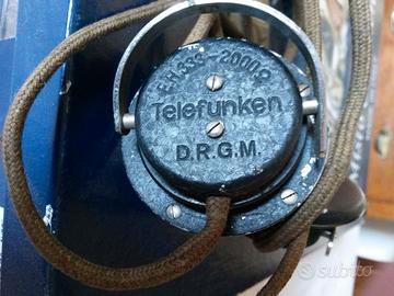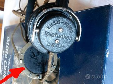 Cuffia della ditta Telefunken con indicazioni e marcature visibili sui fianchi. Data l'epoca di appartenenza, rientrante nel periodo WW2, è possibile che sia stata utilizzata in apparecchi militari tedeschi e raccolta dopo la guerra.