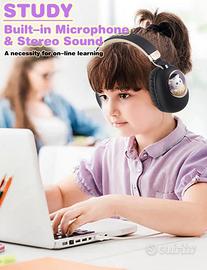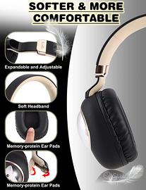?Confortevoli e portatili?cuffie bambini i cuscinetti auricolari in memory foam sono molto comodi e traspiranti, coprono delicatamente le orecchie piccole. La fascia completamente regolabile con morbida imbottitura poggia sulla testa senza alcuna sensazione di sforzo. Queste cuffie wireless per ragazze possono essere ripiegate per risparmiare spazio e viaggiare. Gli auricolari imbottiti e la fascia regolabile garantiscono il comfort dei bambini tutto il giorno.