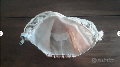 in fine cotone rosa antico, con sottile merletto e roselline.