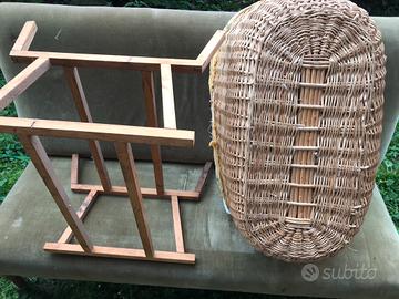 Cesta culla in vimini per neonati vintage anni 50 con supporto in legno 1 metro di lunghezza per 50 cm di larghezza buono stato di conservazione necessita solo di incollatura listelli