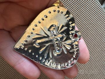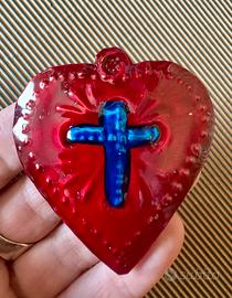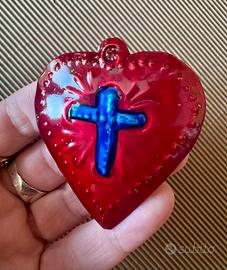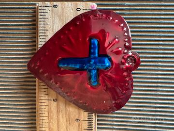 Un ciondolo a forma di cuore con una croce al centro. Realizzato in metallo con finitura lucida. - Design a forma di cuore. - Croce centrale in rilievo. - Dettagli decorativi sul bordo. Croce e cuore metallo cesellato e smaltato a mano, decorazione religiosa ex voto. Misure in foto. #croce #cruz #sagradocorazon #sacrocuore #exvoto #crocecuore #cuoresacro #cuorecroce #cuore #coeur #sacrecoeur #sacredheart #exvotocroix #exvotocroce #religioso #croix