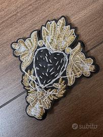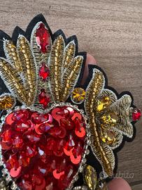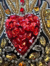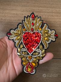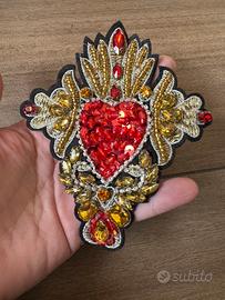 Bellissimo patch a forma di cuore sacro, riccamente decorato con paillettes e pietre.