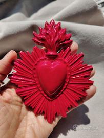 Cuore sacro ex voto realizzato interamente a mano in ecoresina minerale effetto ceramica.