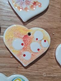 Vendo cuoricini in ceramica realizzata e dipinta a mano, ottimi come bomboniera o souvenir per negozi. Possibilità di fare fattura. Costo 1,00 cad.