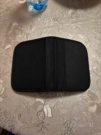 Custodia con carte da gioco e taccuino segnapunti. All'interno è presente una tasca in tessuto nero e due elastici per fissare i mazzi.