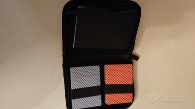 custodia porta carte da gioco con due mazzi di carte da gioco un block notes e penna biro