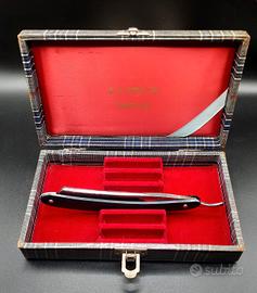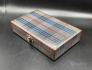 Elegante custodia barbiere anni '50 contiene fino a 5 rasoi a mano libera.La custodia è stata sanificata con detergente enzimatico e disinfettante per tessuti.Chiusura e cerniere perfettamente funzionanti.