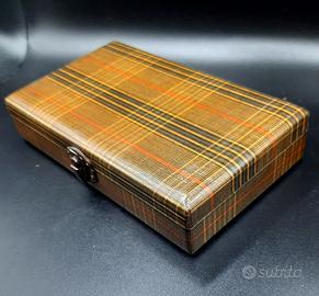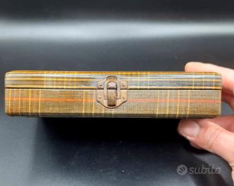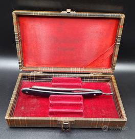 Elegante custodia barbiere anni '50 contiene fino a 5 rasoi a mano libera.La custodia è stata sanificata con detergente enzimatico e disinfettante per tessuti.Chiusura e cerniere perfettamente funzionanti.