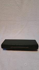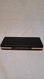2.a : custodia usata per 1 penna, di colore nero opaco con bordo in lamierino e logo esterno dorato, robusta, indicativamente anni 70/80