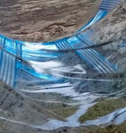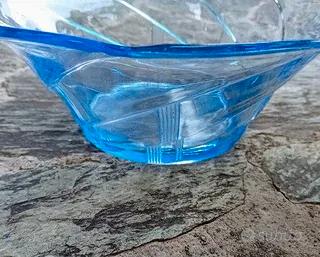 Light blue press glass bowl. Czechoslovakia Art deco 40's.// . Ciotola in vetro pressato anni '40 Czechoslovakia. Spessore abbastanza sottile del vetro mm 4. diametro cm 21 fondo cm 10 altezza cm 8. Ottime condizioni .Vedi foto