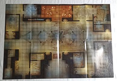 La presente inserzione comprende due grandi mappe a doppia faccia quadrettate (utilizzabili anche come griglie da battaglia), per il gioco di ruolo Dungeons & Dragons. I luoghi rappresentati sono: