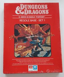 D&D 3 Scatole dei SET COMPLETI originali vintage EG anni '80 con regole base, expert, companion colori ROSSO, BLU, VERDE ACQUA. Condizioni delle SCATOLE MOLTO BUONE/OTTIME. I 3 set sono completi dei rispettivi manuali NON SCRITTI in buone condizioni. Unico difetto segni di ruggine nelle graffette interne. Presenti anche quasi tutti i DADI ORIGINALI tranne il dado da 4. Disponibile a fornire altre foto del prodotto. Vendo solo tutto il lotto (non divido) al prezzo di € 600,00. NON spedisco. Solo scambio a mano in zona Bologna o Romagna. Astenersi perditempo.
