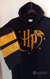 bellissima!!, felpa da donna invernale qualità Erry Potter!, con il logo simbolico e importante della casata dei grifon d'oro, modello a maniche lunghe con cappuccio regolabile, colore sul nero tenue e oro, vi è mostrato che dentro e lievemente felpato, non ne troppo pesante normale grado di calore, tutto e sempre come da foto e descrizione, e lievemente elastico, la parte in oro e luminosa e brillante! ,taglia 14/ che corrisponde e veste solo una taglia 40/ e 42/ devi essere magra, aderisce indossato, altezza felpa, 60/ cm./ ascelle 49/ cm./ spalle circa 44/ 45/ cm./ maniche lunghe circa 56/ cm./ larghe 19/ 20/ cm./ indossato solo 3/ volte lavato igenizzato in ottime condizioni, possibilità di ritiro a mano spese di spedizione da concordare, l'imballaggio sarà adattato e curato, stupenda!!.🤩😍