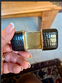 PREGIATO e RARO mini orologio/sveglia da viaggio digitale al quarzo, stile PIRATRON un oggetto VINTAGE riconducibile agli anni '80, da COLLEZIONE. Presenta un display LCD con funzioni di allarme e cronografo. Involucro esterno finitura pelle di alligatore. Da collezione o IdeaRegalo.