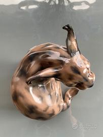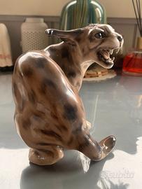 Scultura in porcellana, dipinta e smaltata di Jens Peter DAHL-JENSEN (1874 – 1960) Lince ruggente. n° 1081 , Copenhagen, Novecento