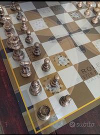 Scacchiera realizzata in alluminio con design originale Rolex e logo Rolex neri incorporati.
