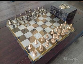 i pezzi degli scacchi sono dipinti in oro e nero con un alone antico dorato.