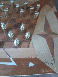 dama legno fatto mano bellissima vendo per inutilizzo pedine in metallo
