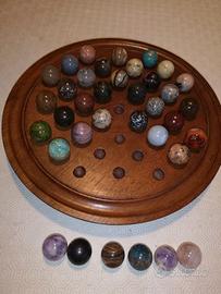 Dama cinese con base in legno massello d. 355 mm completa di 36 perle-pedine d. 30 mm in pietre dure naturali ed originali di varia tipologia (Rodocrosite, Rodonite, Quarzo aretisia, Amazzonite, ….). Tutti i pezzi sono autentici ed integri, per intenditori, no perditempo. Prezzo base.
