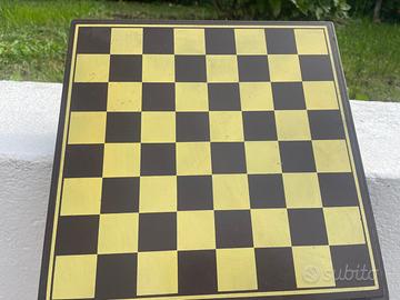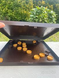 Contenitore in plastica, contenente pedine per gioco dama da un lato e tris dall'altro. In perfette condizioni. Anno 1980
