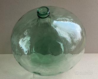 Damigiana in vetro anni 70 detta a “cipolla” a fondo piatto. Altezza cm.36, diametro cm.45. Capacità lt. 25. Condizioni: come nuova, presenta diverse bolle tipo vetro soffiato.