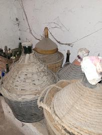 Damigiane vetro soffiato per vino originali. Trasparenti e verdi.Sempre usate per il vino. Consegna solo ritiro a mano. Alcune ancora da svuotare