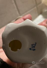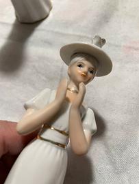 Statuina in porcellana bianca con decorazioni dorate, con marchio P sotto corona. Nuova.