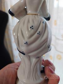 statuetta in stile vittoriano , molto delicata e definita. viso bombatura e pieghe del vestito. cestino dei fiori. decorazioni in oro . a richiesta foto più dettagliate. altezza della statuina è 16,5. condizioni perfette .
