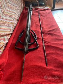 Vendo Dapiran saber 90/7,25 versione Cobra , come nuovo . Questa versione molto rara riduce l’ impennarsi del fusto garantendo maggiore precisione del tiro . Il grilletto a rullino in acciaio resta dolce anche con carichi elevati di potenza . Allestito con potenziatore 3 sulla prima puleggia ed elastico circolare sulla seconda. Comprensivo di un’ asta di riserva nuova anch ‘ essa con gancetto . Mulinello con qualche metro in meno di dyneema . Spese spedizione a parte . No perdite tempo per favore . Resto a disposizione per info . Grazie
