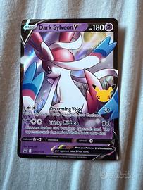 vendo carta pokémon dark sylveon v promo numero swsh134. edizione speciale celebrations 25th anniversary. • lingua: inglese • condizioni: near mint (nm) - collezionata con cura, mai giocata. • dettagli: la carta presenta il logo del 25° anniversario sull'artwork. • spedizione: imballaggio rigido e professionale. la carta verrà spedita in sleeve (bustina protettiva) e toploader per evitare pieghe o danni durante il trasporto.