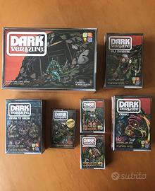 L'oggetto in vendita è un lotto contenente il gioco da tavolo Dark Venture corredato di sei espansioni, proveniente dalla relativa campagna Kickstarter.