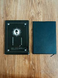 Replica ufficiale del quaderno Death Note, completa di penna a piuma bianca e scatola originale. Perfetto per collezionisti e cosplay di Light Yagami.