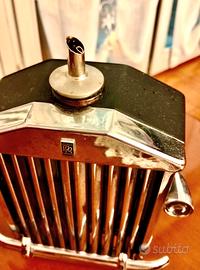 Decanter per whisky, a forma di griglia frontale della Rolls Royce, degli anni 60-70. Completo del tappo raffigurante l'angelo stemma della Rolls Royce.