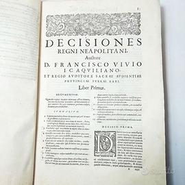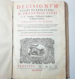 DECISIONUM REGNI NEAPOLITANI, d. Francisci Vivii i.c. Aquilani ... liber tertius, et quartus. In quibus diuersi casus in Sacra Regia Audientia, prouinciae terrae Bari, nec non in Regia Audientia Capitinatae Apuliae, comitatusq. Molisij, prius discussi atque decisi, deinde singulari artificio exornati, ac feliciter expediti continentur: adiectis summariis, et duplici indice ...