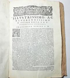In folio (32x22 cm), pp. n.n. 104 + 557, frontespizio rosso e nero con bella marca tipografica In cornice figurata, salamandra coronata fra le fiamme. Motto: Virtuti sic cedit invidia, Iniz. e fregi xil, testo in ottimo stato di conservazione. Frontespizio e prime 4 pagine slegate in parte.