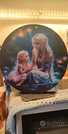 Decorazione artistica stile Fantasy in metallo raffigurato dolci Elfi Mamma e Figlia su sfondo ruscello e cielo notturno di stupendo design arredo casa ufficio misure 20x20 cm.gia presenti piccoli fori per facilitare l'essere appesa.Fantasy-style metal art decoration depicting a sweet Elf Mother and Daughter against a stream and night sky background with a stunning design. Home or office decor, measures 20x20 cm. Small holes are already pre-drilled for easy hanging.