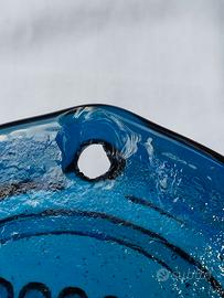 Vendo decorazione da finestra , detta anche acchiappa sole , in vetro di Murano colore blu, anni 50/60, raffigurante " Menorah " . La decorazione nel retro e in corrispondenza del foro di fissaggio ha una piccola sbeccatura come da foto . Dimensioni 11 cm. Spese a carico del destinatario