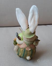Articolo in RESINA, con soggetto un CONIGLIO con un cesto di fiori, al cui interno c'è una candela a forma di UOVO.