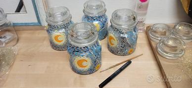 Decorazioni da appendere, fermapacchi, segnaposto, calamite, lampade, portacandele, bomboniere a tema Van Gogh. Totalmente dipinte a mano.