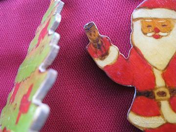 decorazioni natalizie in legno fatte, ritagliate e dipinte interamente a mano decorate su entrambi i lati oggetto vintage