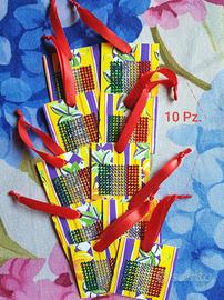 Decori 6x6cm da appendere, anche all'albero di Natale, con bandiera italiana. Plastica, glitter e nastrino di raso. 10 pezzi.