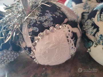 Decori Natalizi tonalità blu bianco e argento 6 palline in polistirolo, stoffa e paillettes fatti a mano