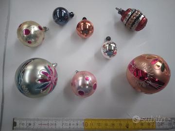 addobbi d'epoca, puntale e palline in vetro, babbo natale anni 60 in panno.