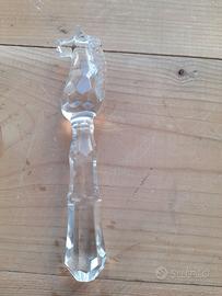 Delicato oggetto decorativo a forma di testa di cavallo, realizzato in cristallo trasparente. - Design sfaccettato che cattura la luce. - Dettagli finemente lavorati. - Base stabile per l'esposizione.