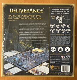 L'oggetto in vendita è la versione Kickstarter del gioco da tavolo Deliverance Deluxe Edition, completo di tutti gli Stretch Goals le esclusive sbloccate durante la campagna KS.