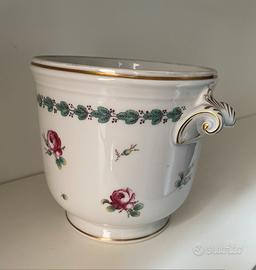 Un vero gioiellino vintage, raro cache-pot Richard Ginori - Manifattura Doccia (Firenze). Con un elegante decoro a roselline e bordatura a foglioline verdi. E un pratico doppio manico rifinito in oro. Ritiro/Consegna a mano, Napoli città. O spedizione.